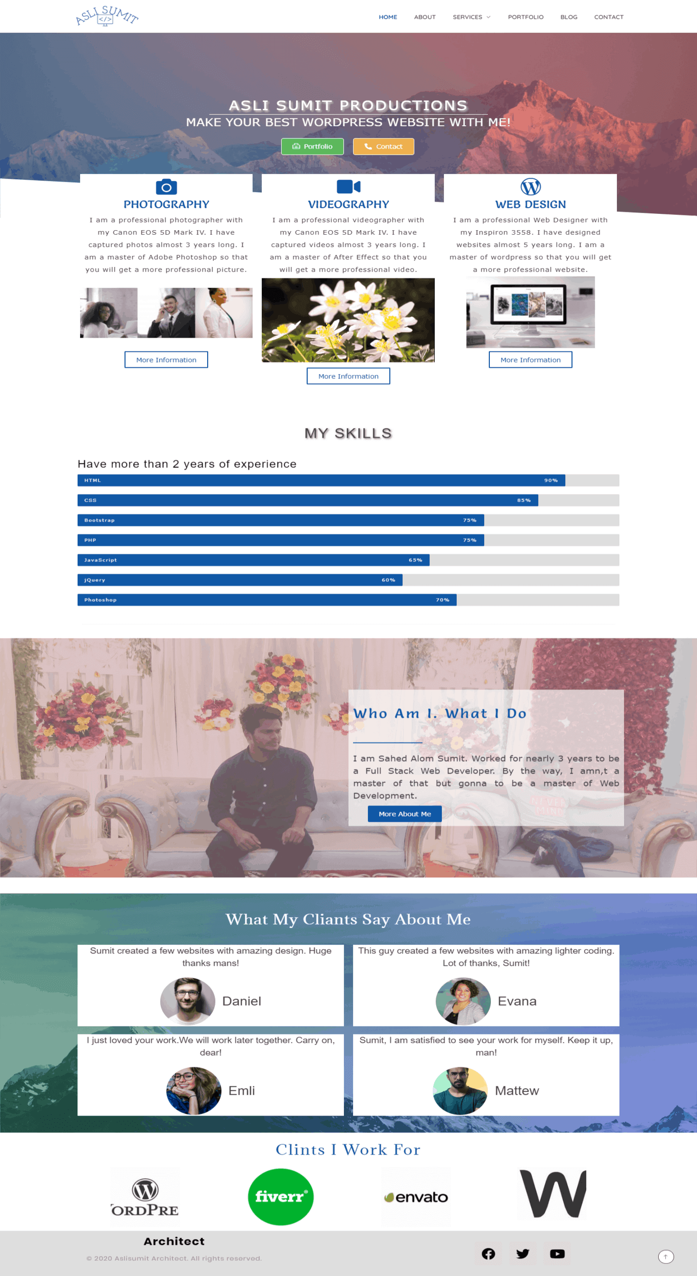 I love to do PSD to HTML5, PSD/HTML to WordPress responsive (Elementor), Design and Develop Any Website from Scratch, Any Theme Customization, Woo-commerce Expert, Add SSL Certificate, Extensively Increase WordPress Speed Optimization, Ensure WordPress Maximum Security & Remove Malware and WordPress related any job.